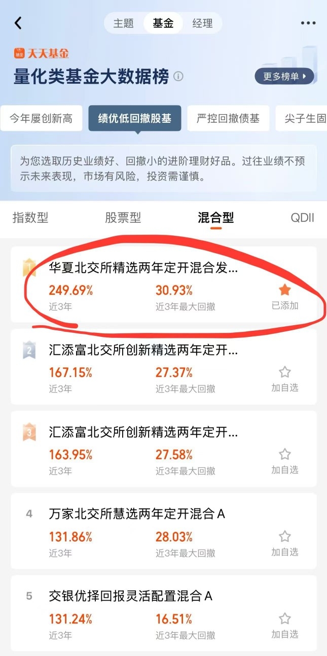 最近北交所的呼声挺高,政策支持强,近三年收益超249%,跑赢北证50指数200%+,$华夏北交所精选两年定开混合发起式$这次连续好多天霸榜绩优低回撤股基榜单第1,两年一开放的机会别错过啦,加仓加仓
