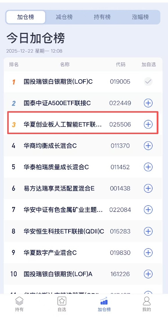 今天这涨势是真的猛,当前估值已经有3%+了,下午估计还会继续冲,今天也是上了平台的加仓榜前三了,看样子资金都在低吸啊,而且这基场内半年收益就有91%+了,场外怎么着中长期也能业绩不错,咱也得跟上才行,低吸5k$华夏创业板人工智能ETF发起式联接C$