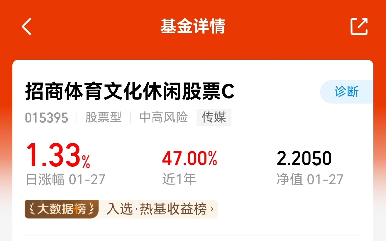$招商体育文化休闲股票C$ 1.33%表现不错继续加油