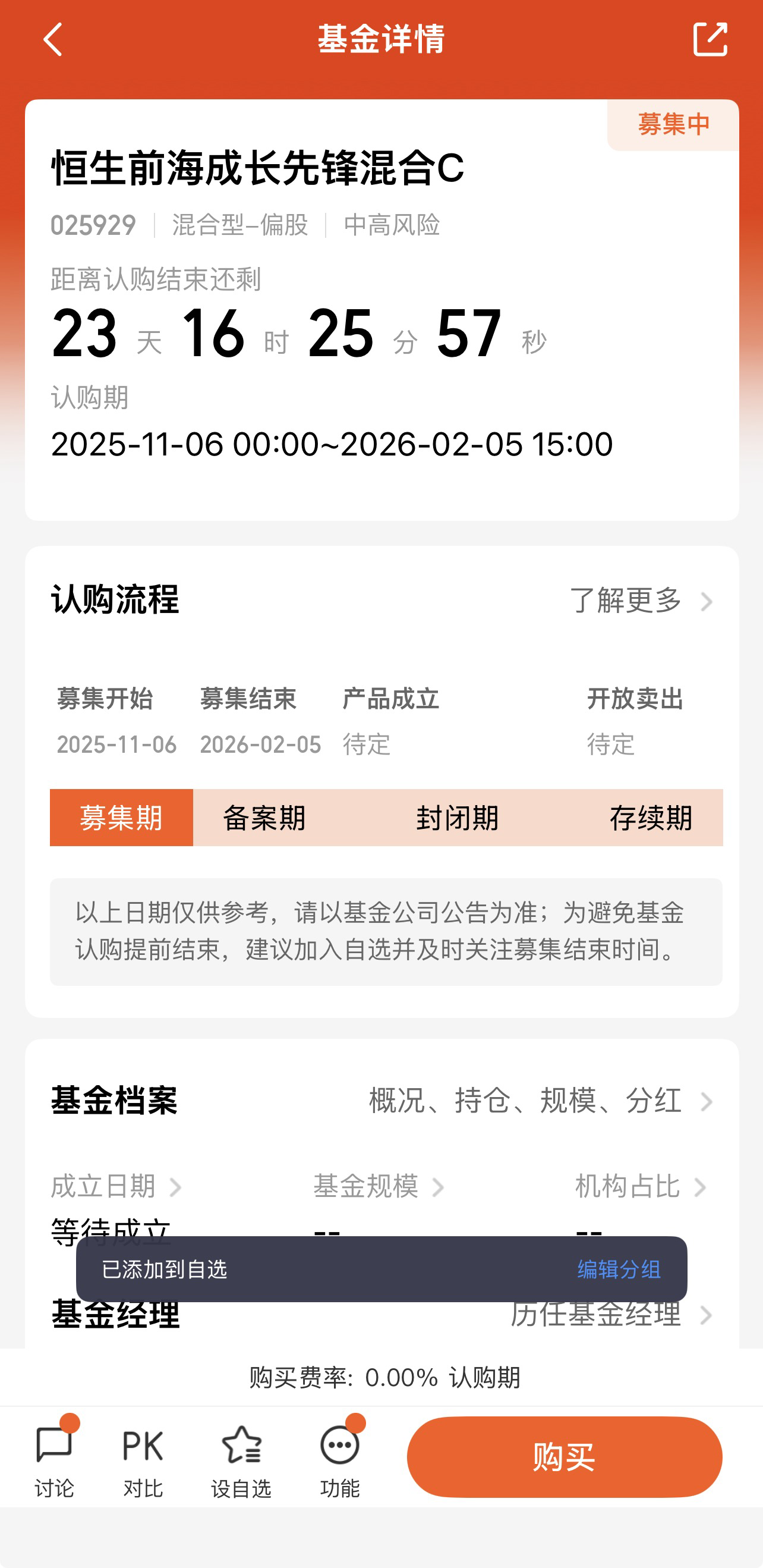 恒生前海成长先锋混合C(025929)是否值得买入,需结合投资者风险承受能力、投资周期综合判断:对于风险承受能力较高、投资周期≥6个月、看好科技成长+顺周期赛道的投资者,具备一定配置价值;对于保守型投资者或短期投机者,不建议盲目买入。其核心持有逻辑围绕“双基金经理经验互补+赛道适配宏观趋势+费率结构优势”展开,但需警惕新基金建仓风险与市场风格切换风险。