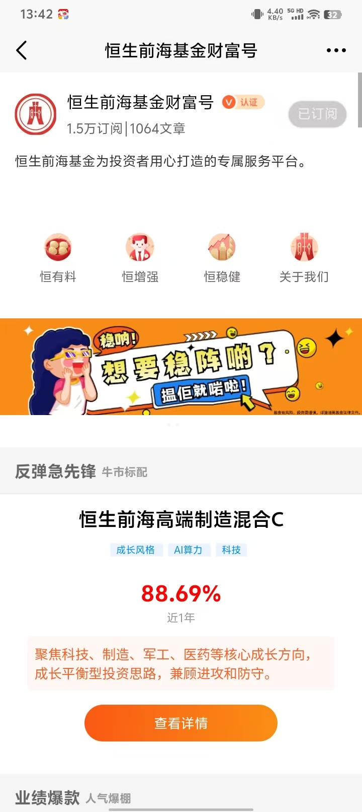 恒生前海成长先锋混合C适合作为2026年成长板块布局工具,但需理性看待。基金策略契合"成长+估值"双因子筛选趋势,可覆盖A股+港股优质成长标的,C类费率适合中长期持有。但需注意基金经理经验不足、无历史业绩等风险点。建议结合自身风险承受能力和投资周期,采取核心-卫星或定投方式参与,同时做好与价值风格资产的平衡配置,降低单一风格风险。@恒生前海基金