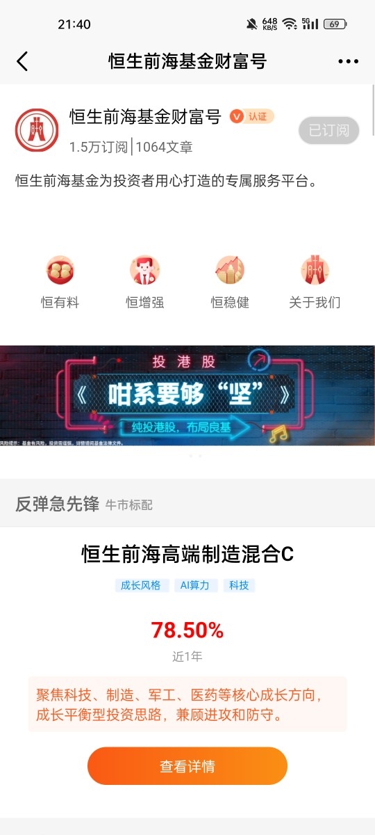 组合层面,我选择恒生前海成长先锋混合作为核心卫星。基金经理对“业绩为王”的选股框架与我的判断高度契合——仓位集中在上游算力设备、中游AI加速卡及下游智能终端,前十大重仓对应2026年一致预期净利增速普遍在35%以上,且估值低于行业中枢。基金过去三个月在市场震荡中仍跑出超额收益,证明其调仓能力与风控纪律。2026年宏观流动性保持宽松,国内利率向下、海外降息周期延续,成长股相对盈利优势有望进一步扩大。我会把70%的权益仓位交给这只基金,剩余30%留作黄金与电力等高股息防御,一旦AI应用出现新的爆款场景,再择机加仓。简而言之,成长仍是全年主线,恒生前海成长先锋是我参与这场科技盛宴的首选利器。@恒生前海基金