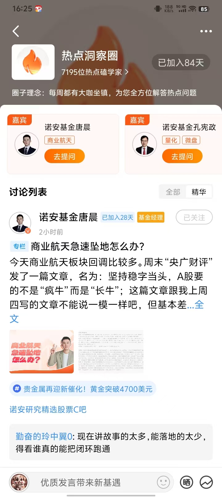 问题3:军工行业研究门槛高、部分细分领域缺乏高频数据验证。您作为医药研究出身却成功跨界军工投资,想请教您:是否会借鉴创新药的"产品周期"研究框架来评估军工型号列装周期?在无人装备、卫星互联网等新方向中,如何识别真正有订单、有技术壁垒的核心标的,而非纯主题炒作?