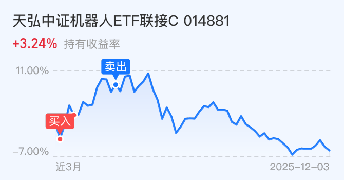 机器人板块昨日放量拉升盘中强势突破20日均线阻力,但因持续冲高力不太足,盘中有所回落尾盘也是勉强守住支撑。虽拉升放量但低迷许久也是需要时间恢复情绪,今日平开早盘直接低走,触及支撑稳住才有所拉升,截至发稿小幅上涨。板块短期稳住了突破的20日均线,之后仍有向上修复的需要,还是可以继续看好的。今日不动。$天弘中证机器人ETF发起联接C(OTCFUND|014881)$