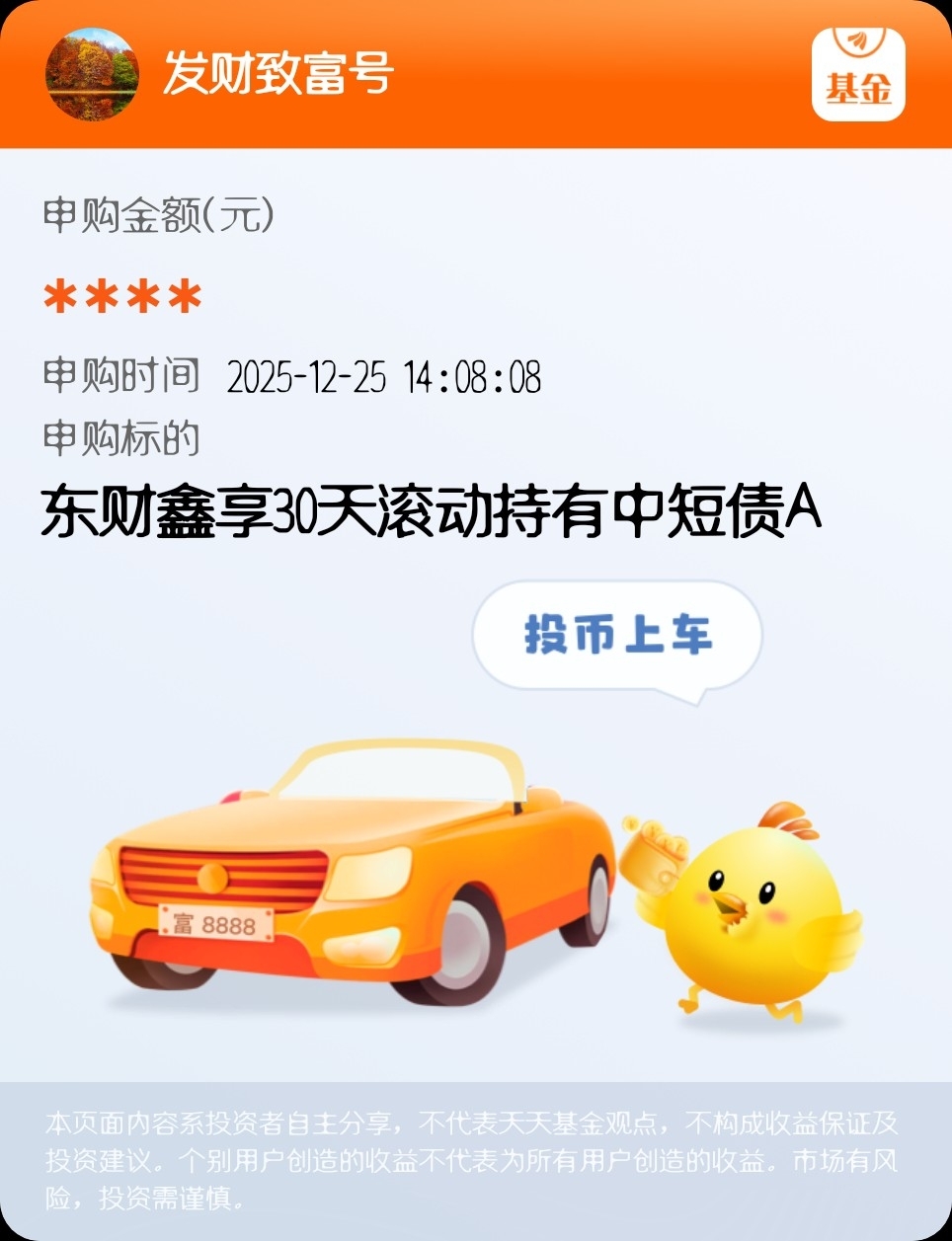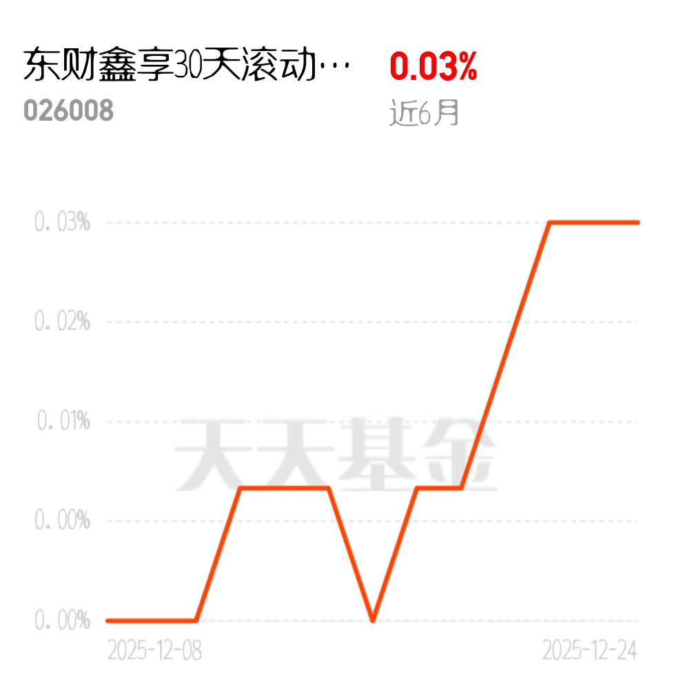 年底存款利率低到离谱,三年定期才 2.2%,大额存单也才 2.1%!$东财鑫享30天滚动持有中短债A$ 乍一看是新基,其实是东证融汇更名来的老熟人,2013 年就成立了!常年收益跟画直线似的,极少亏本金,堪称大号余额宝。现在转到东财,策略一点没改,岁末资金求稳,拿它和禧悦 90 天一半一半做债基底仓,稳当过节!