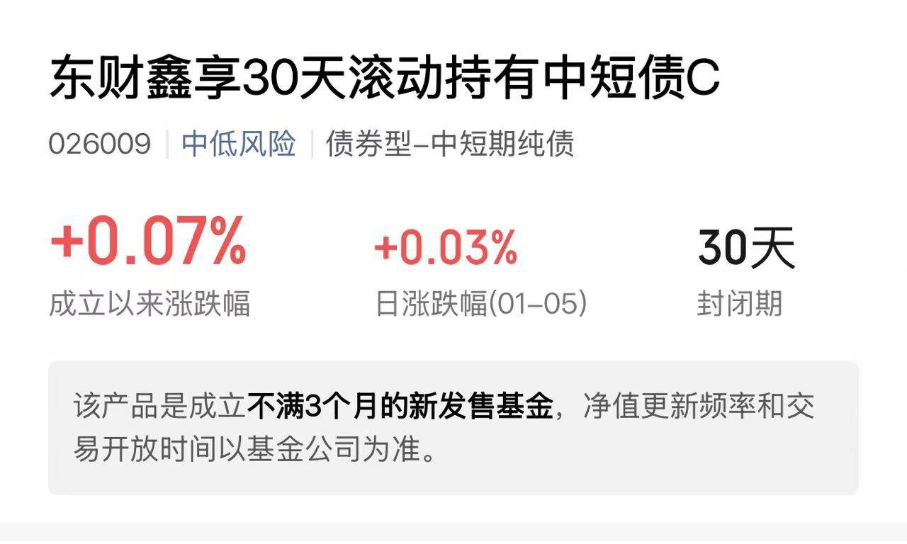 2026 年基金销售新规落地,债基赎回压力缓解,稳健理财更安心了!$东财鑫享30天滚动持有中短债C$ 就是余额宝 plus,巨稳,闲钱放这不用慌,比活期存款赚得实在多。
