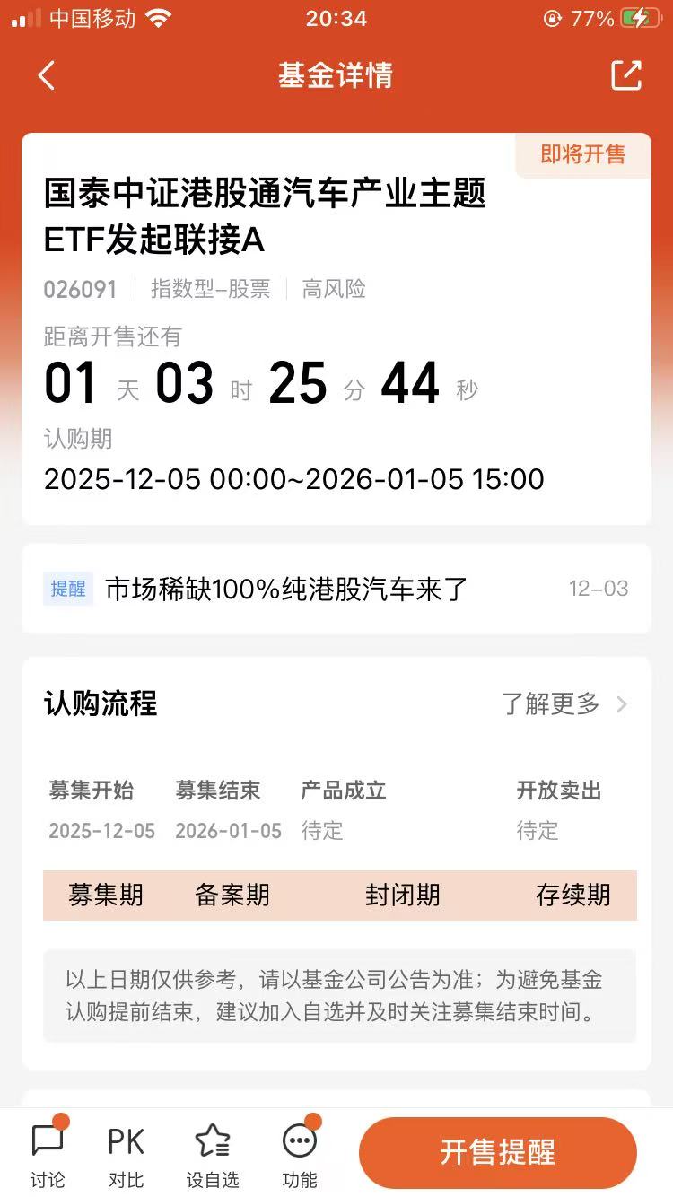 不过话说回来,我这种散户,直接去买港股个股风险太高。一是不了解境外市场规则,二是很难精准抓到龙头。所以我更倾向于用基金来布局,最近留意到国泰要发的两只ETF联接基金,$国泰中证港股通汽车产业主题ETF发起联接A(OTCFUND|026091)$和$国泰中证港股通汽车产业主题ETF发起联接C(OTCFUND|026092)$,倒挺对胃口。