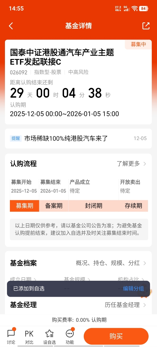 $国泰中证港股通汽车产业主题ETF发起联接C$