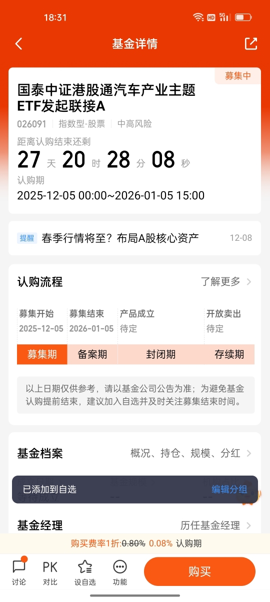 投资就像一场马拉松,不是百米冲刺。在智能驾驶的黄金十年里,我们可能会经历市场的涨跌起伏、行业的调整变化,但只要坚信技术进步的力量,坚持长期投资的理念,就一定能穿越市场周期,收获丰厚的回报。这只基金的发行恰逢其时,它不仅为我们提供了低门槛参与港股汽车产业的机会,更让我们能够在智能驾驶的浪潮中,成为产业变革的“参与者”和“受益者”。