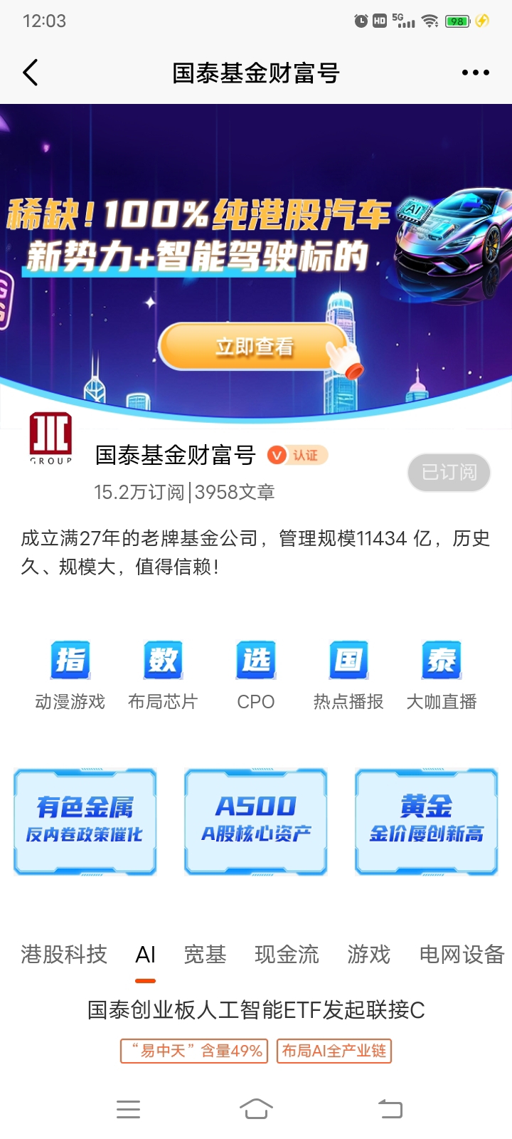 #铜价刷新历史高点!# #机构:看好“春季行情”提前开启# #12月基金投资策略# #12月你看好哪条投资主线?# 我看好$国泰中证港股通汽车产业主题ETF发起联接C$ !我最近一直在关注港股的汽车板块,打算认购这只国泰中证港股通汽车产业主题ETF发起联接C,主要是真的看好接下来这块的机会。