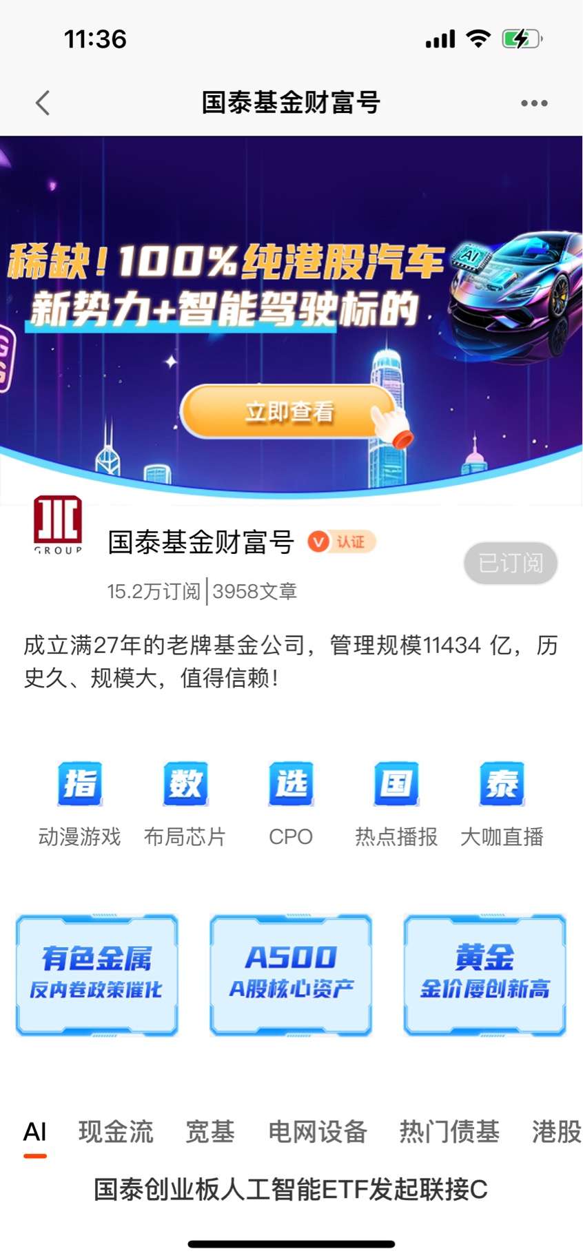 最后再多说两句:我不是说这只基能“稳赚不赔”,港股波动本来就大,汽车板块也受行业周期影响,但它的“稀缺性+赛道逻辑+低费率+稳公司”这几个点,刚好戳中了我“想布局汽车智能化、又不想踩个股雷”的需求。我自己的计划是:募集期先投1万打底,等基金成立后,每跌5%补5000,拿着至少1-2年,不是赌短期涨跌,是赌“汽车智能化”这个长逻辑。毕竟咱们普通散户,找对赛道、选对工具,比天天盯盘折腾靠谱多了。就这么愉快的决定了!国泰出品,必属精品,国泰中证港股通汽车产业主题ETF发起联接基金,你值得拥有!!!