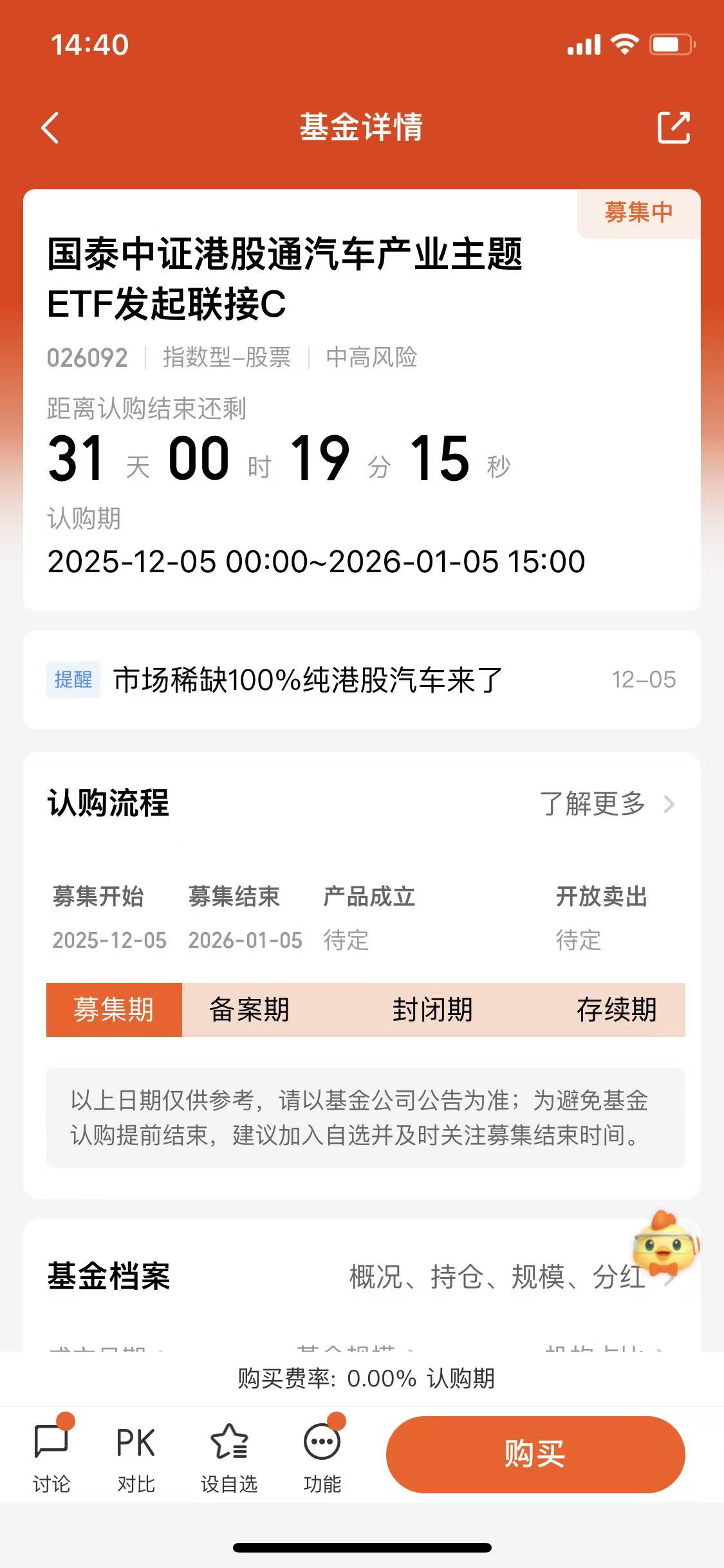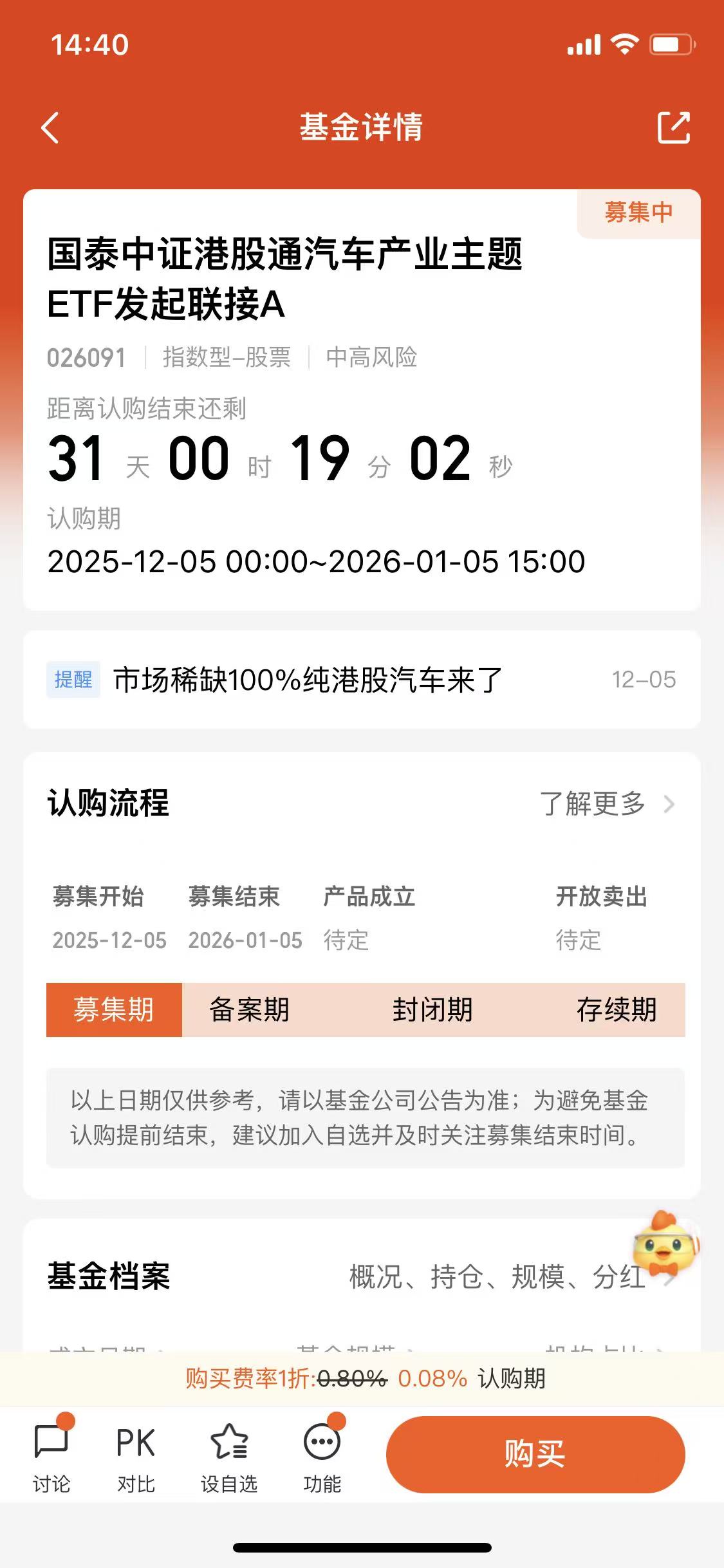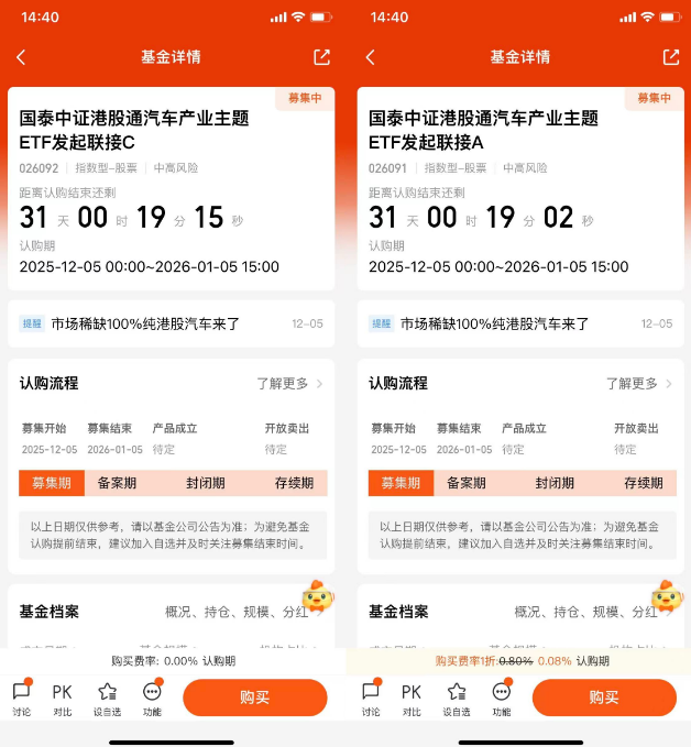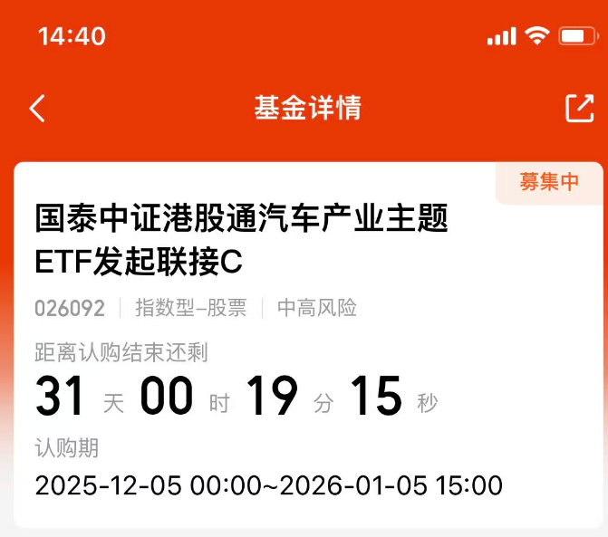这只国泰中证港股通汽车产业主题ETF发起联接C(026092),刚好卡在认购期(2025.12.5-2026.1.5),既有稀缺的纯港股汽车指数背书,又有低费率、灵活申赎的优势,恰好符合当下布局窗口期。对于想把握新能源汽车全球化红利,又不想承担单只股票风险的普通人来说,现在上车正好赶上行业向上的风口,不要错过哦。@国泰基金