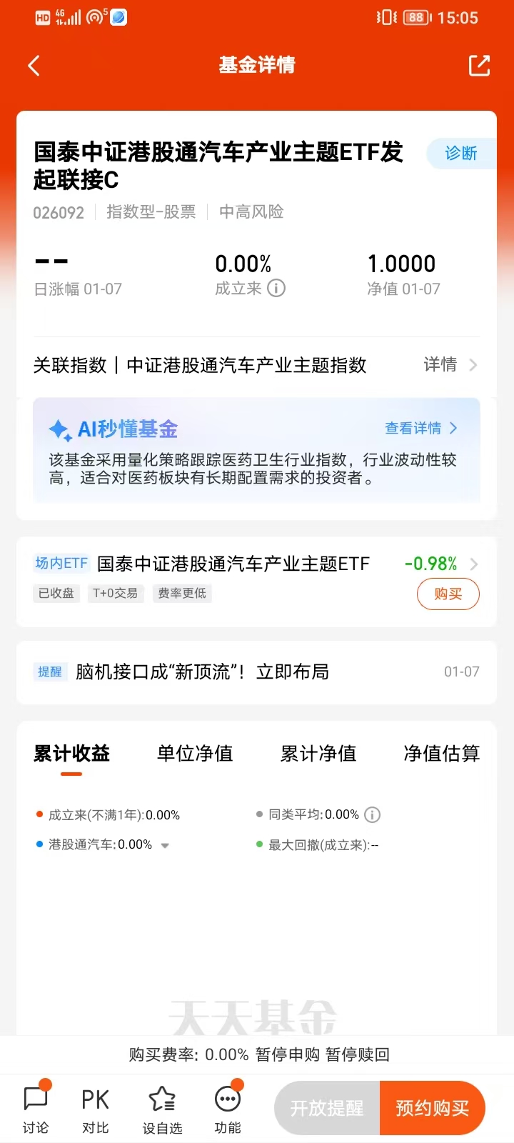 $国泰中证港股通汽车产业主题ETF发起联接A(OTCFUND|026091)$
