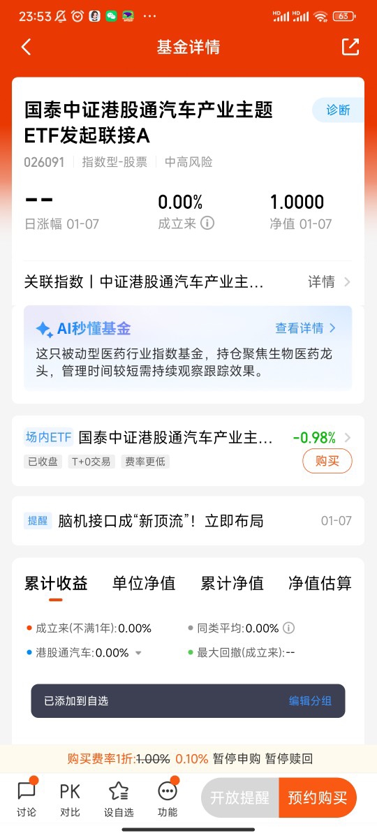 如果你也看好中国汽车产业的全球化崛起,认可港股汽车板块的估值优势与成长潜力,不妨将这只基金纳入你的2026投资清单。用长期视角布局,忽略短期波动,相信在政策红利与产业趋势的双重驱动下,港股汽车板块将为投资者带来可观的回报。最后提醒一句,基金投资有风险,过往业绩不代表未来表现,投资前请结合自身风险承受能力理性决策。@国泰基金 @洒脱的魏泓莎 @平平淡淡来理财