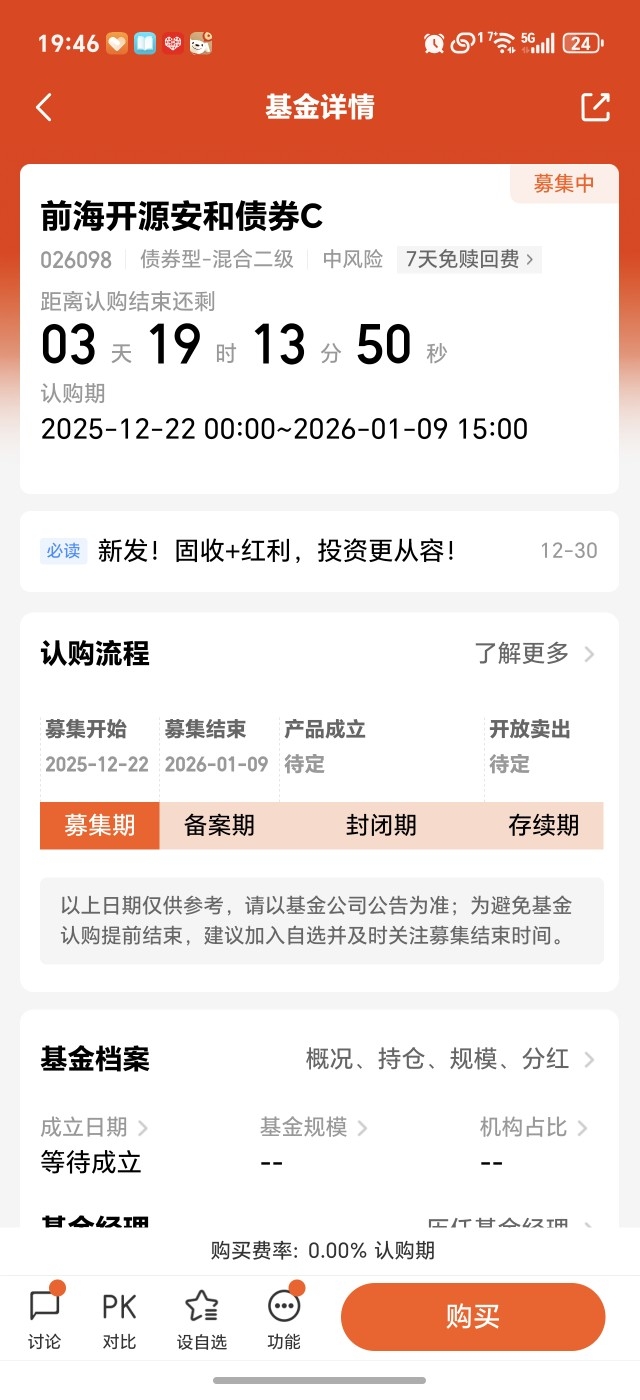 马上到了该过年的时候,年终奖大批的集中下发,让我对新入手的资金有了新的考虑。$前海开源安和债券C$ 属于固收+红利的产品,应对风险更加从容,收益也更加稳中有进,能助力我在新的一年获得更加多的收益。我已将$前海开源安和债券C$ 加入自选。