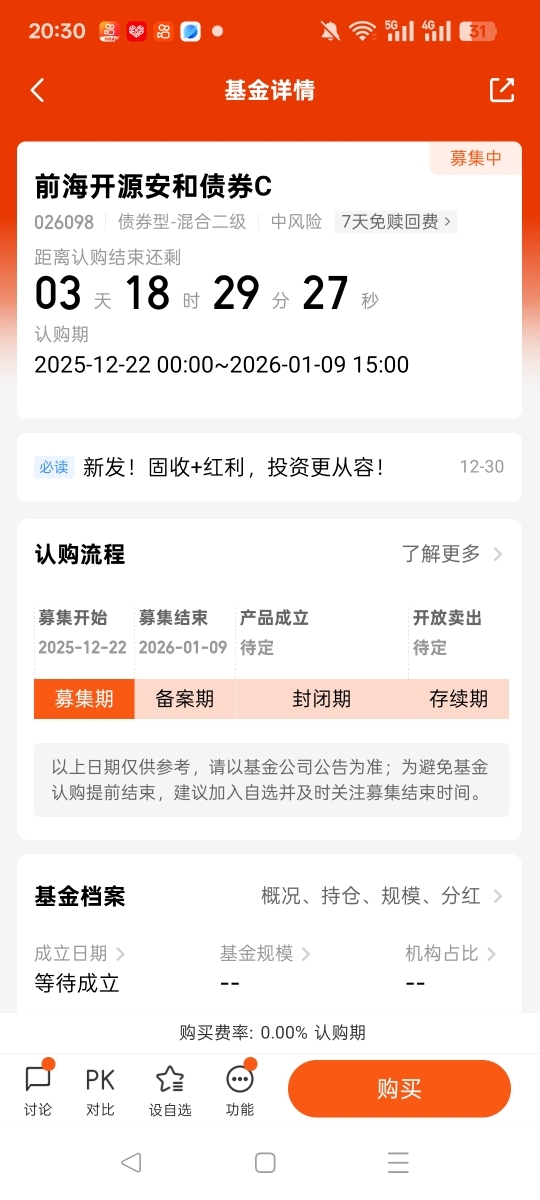 3. 费用:目前看是0费率认购(很多平台都标注了),这是个小优势——要是等基金成立后开放申购,虽然可能也有折扣,但现阶段认购不用花手续费,能省一点是一点。