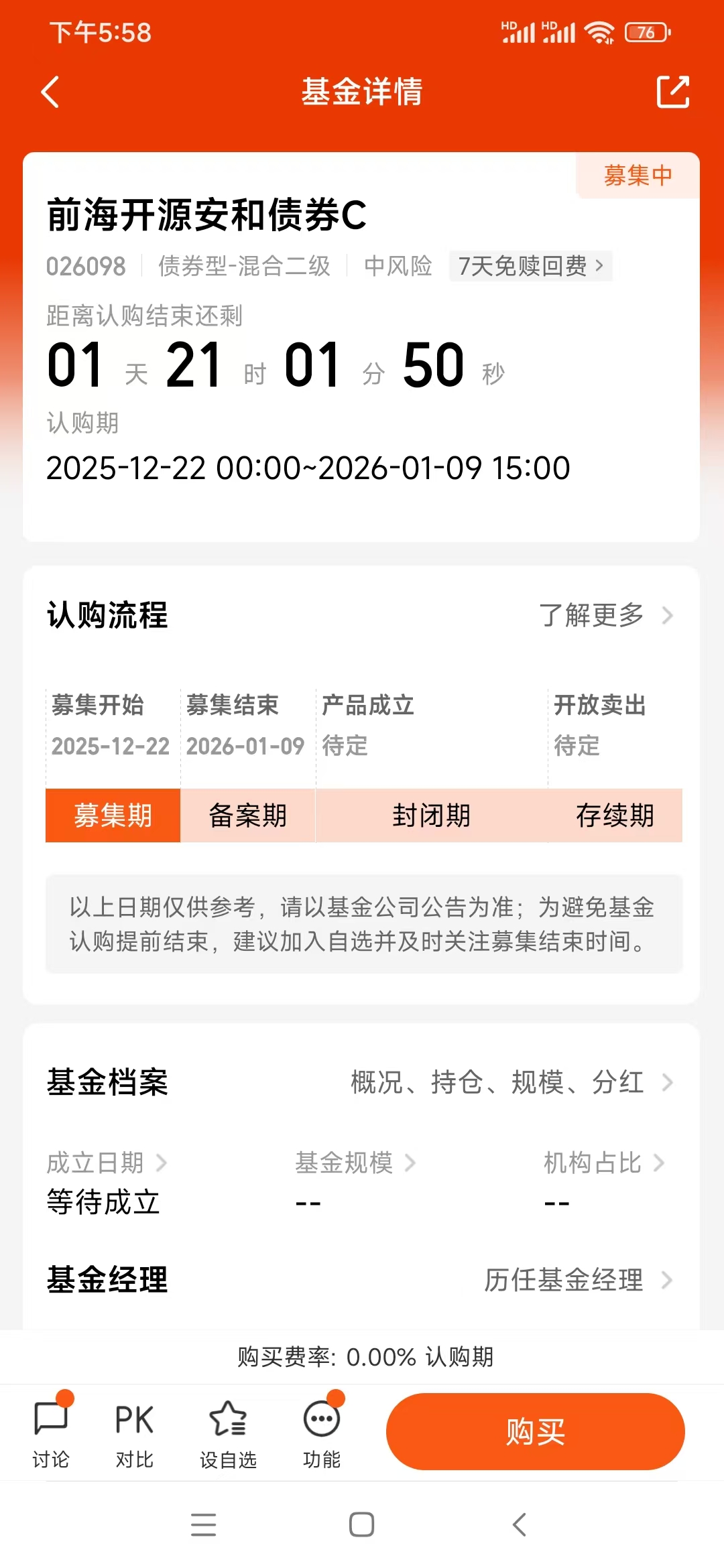 目前这只基金还在募集期(2025-12-22 00:00~2026-01-09 15:00),想要布局春节档、规避市场波动的朋友,不妨多关注一下,毕竟对于普通投资者来说,稳健赚钱才是长久之道。(本文仅供参考,不作为投资建议)@前海开源基金
