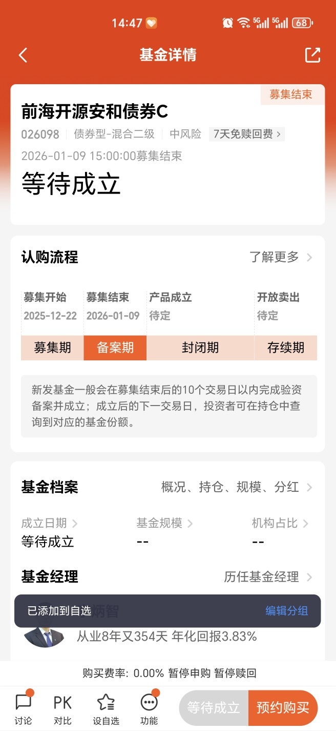 - 公司:前海开源基金固收团队经验丰富,在信用债、利率债投资及风险控制上有成熟体系,历史固收产品业绩稳健。