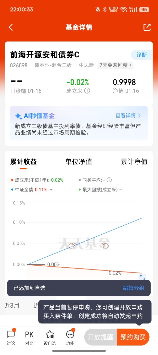 经过多维度对比分析,我已坚定将前海开源安和债券C加入自选,将其作为2026年核心配置之一。相信在专业团队的管理下,这款产品能持续为持有人创造长期可持续的稳健回报,不负“持有人利益至上”的品牌承诺。$前海开源安和债券C$