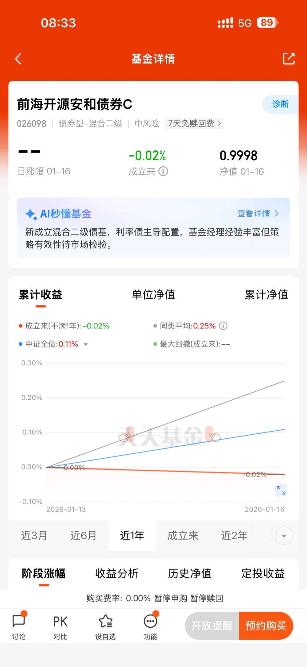 持有这几个月,最让我满意的是它的“稳”。每天打开基金APP,看到的大多是正收益,偶尔有小幅回调也很快修复,不像之前买的偏股基金那样大起大落,让我提心吊胆。印象最深的是上个月市场震荡,不少权益类基金大幅回撤,而我的前海开源安和债券C不仅没亏,还保持了正收益,那一刻真的感受到了“固收底仓”的安全感。