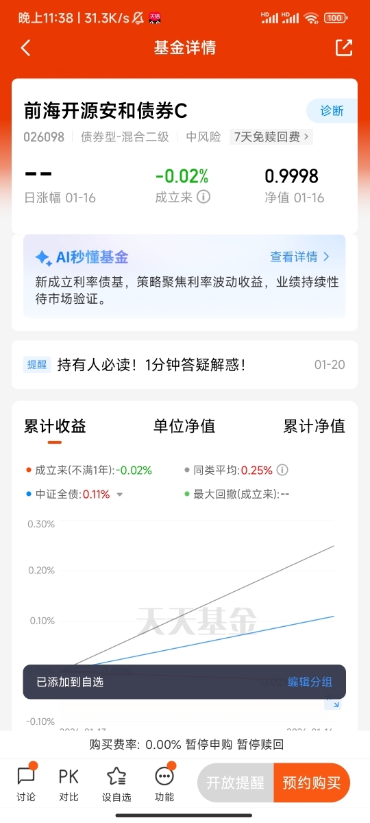 最近不少朋友问我,市场波动这么大,有没有既能睡得安稳,收益又比货币基金高的理财?研究了一圈,发现前海开源安和债券C(026098)挺合心意,今天就用大白话跟大家聊聊这只基金的方方面面,不管是刚入门的新手,还是想找“压舱石”的老股民,都能看明白。