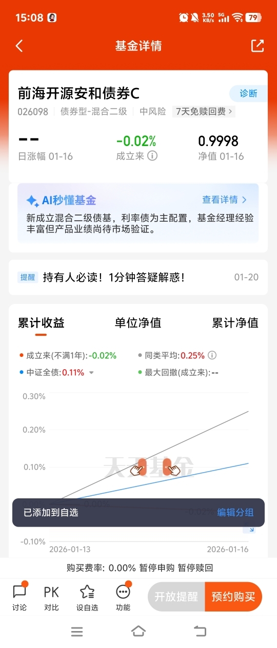 我已将$前海开源安和债券C$ 加入自选