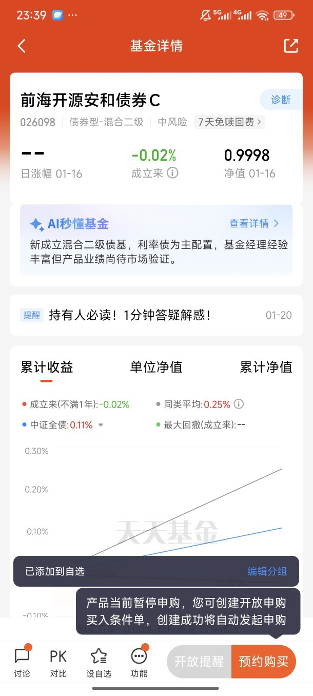 当然了,咱们也得客观说说,这只基金不是没有风险。它毕竟有5%-20%的股票仓位,遇到股市大跌的时候,基金净值可能会跟着小幅度波动。比如2026年1月16日那天,净值就微跌了0.02%,虽然幅度很小,但也说明它不是绝对保本的。不过从历史数据看,基金经理控制回撤的能力还可以,之前管理的基金在市场波动时,跌幅都比同类平均小很多,而且长期持有下来,收益还是正的。