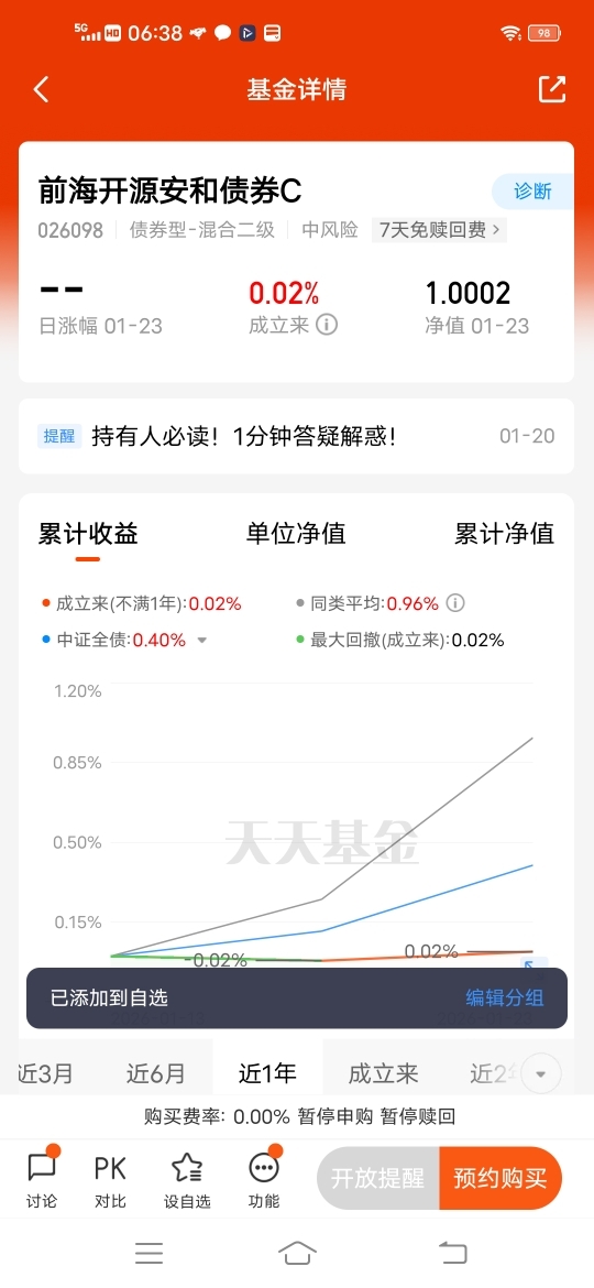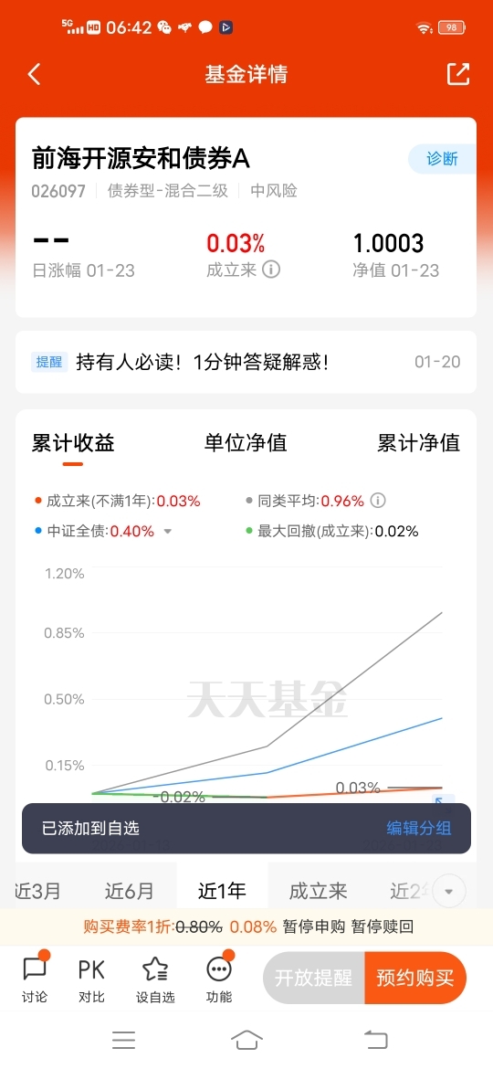 基民小虎是前海开源基金的铁粉,一直定投持有前海开源黄金ETF联接C、前海开源港股通股息率50强、前海开源金银珠宝混合C、前海开源沪港深乐享生活、前海开源嘉鑫混合C、前海开源沪深300指数A等多个基金,收益和体验都非常好!将会继续定投、买入前海开源基金产品,并长期坚定持有!$前海开源安和债券C$ @前海开源基金