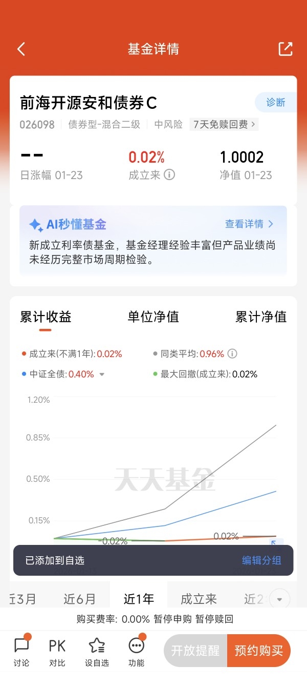 最近,市场波动得像过山车,把我的小心脏吓得扑通扑通。放在活期里的钱,收益几乎可以忽略不计;追高热门基金,又怕成为被收割的“小韭菜”。就在我焦虑地到处扒拉时,我遇到了它——$前海开源安和债券C(OTCFUND|026098)$。