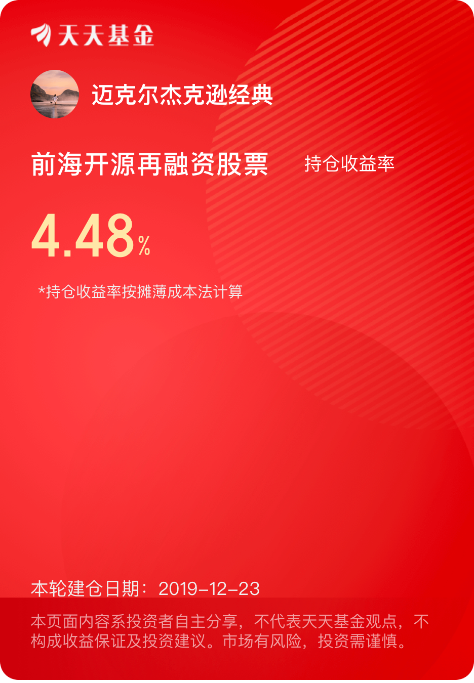 选择固收+,就是选择稳稳的幸福加些小惊喜。债基作为资产配置为盾,+为矛进攻。前海开源基金大公司,值得信任。@前海开源基金 #晒收益#