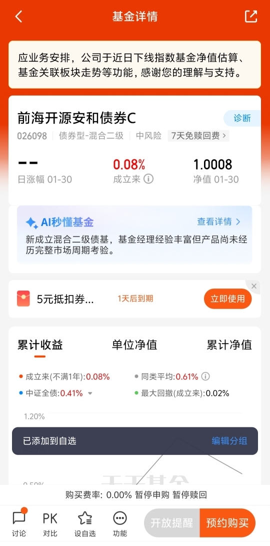 前海开源安和债券C是一只定位清晰、策略稳健的二级债基,依托李炳智的固收投资经验,以“固收+红利”策略力争为投资者创造稳健收益。$前海开源安和债券C$ 适合作为资产配置中的稳健型工具,尤其适合中短期资金配置。但需注意其成立时间较短、权益仓位带来的波动风险。我已将$前海开源安和债券C$ 加入自选。