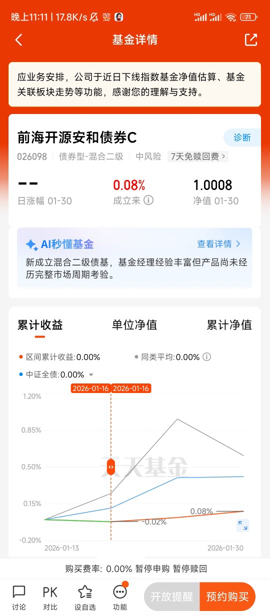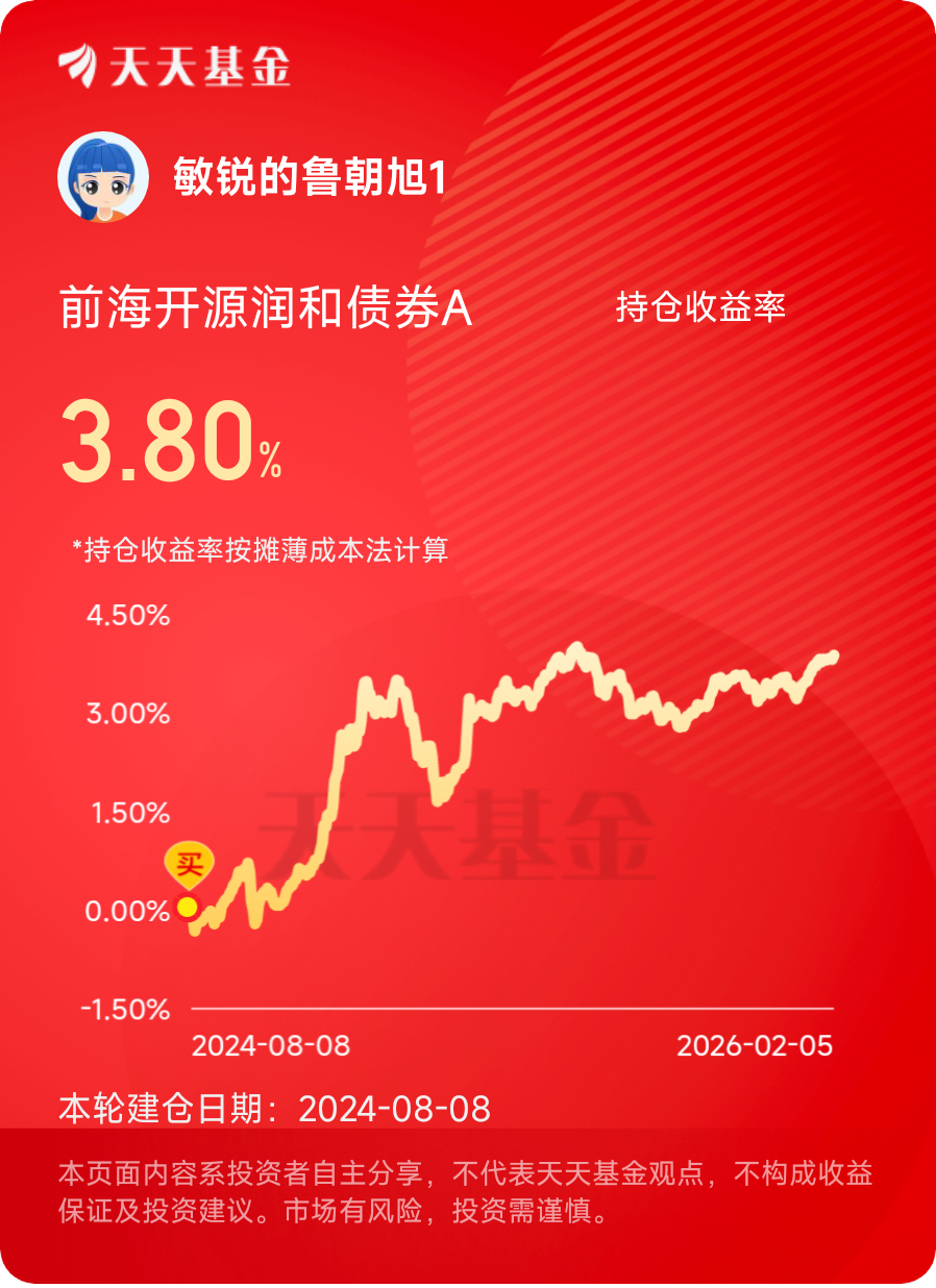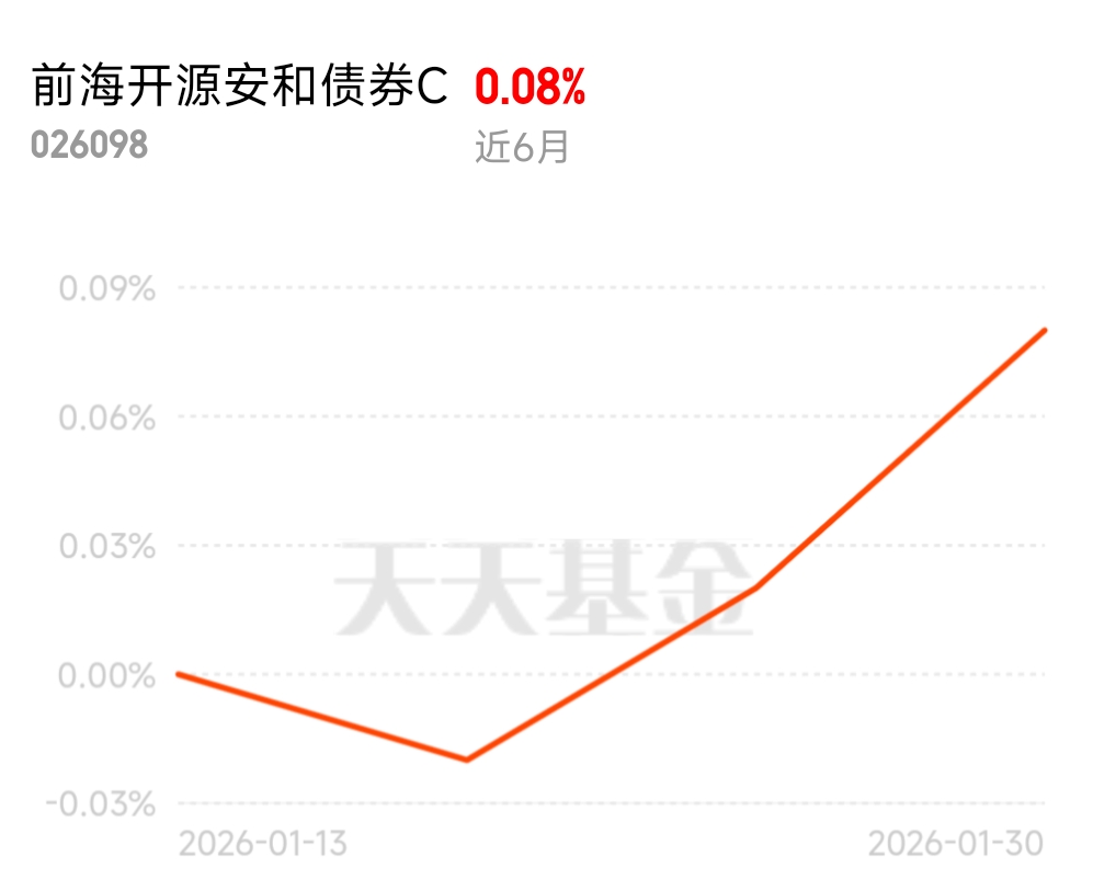 结合2026年的市场环境,我觉得这样的稳健型基金只会更受欢迎。现在大家都越来越明白,投资不是赌大小,稳稳的幸福才更长久。前海开源安和债券C用债券打底保安全,用红利股增强收益,还有经验丰富的基金经理掌舵,费用低、门槛低、灵活度高,完全符合普通人对稳健理财的所有期待。@前海开源基金