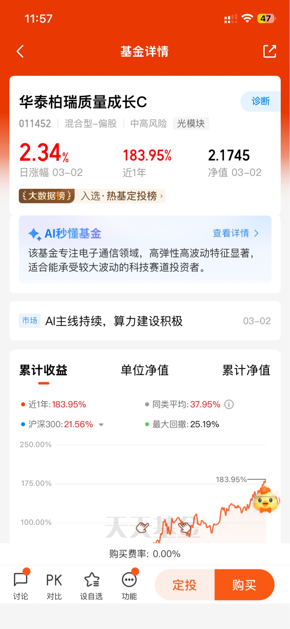 今天CPO板块又给大家上强度了!光模块、算力硬件全线飘红,AI大模型迭代和数据中心建设的需求,直接把这个赛道的热度拉满。但自己盯盘选股真的太累,还容易追高被套。不如看看华泰柏瑞,它专注电子通信领域,精准踩中AI算力这条主线,近一年收益表现亮眼,弹性拉满。对于想蹭风口又不想单打独斗的朋友,用定投分批布局,既能分享行业红利,又能平滑波动,省心又靠谱。$华泰柏瑞质量成长C$ #3月基金投资策略#