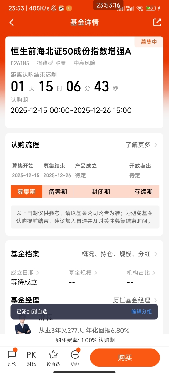 1. 长期配置价值突出:北证50指数成分股以高成长性、高研发投入为特征,符合国家战略发展方向,具备长期配置价值。建议将恒生前海北证50指数增强基金作为资产配置中的成长型资产,配置比例控制在总资产的10%-15%。