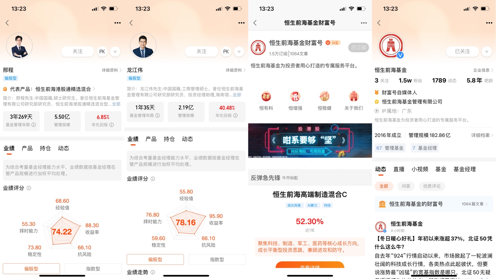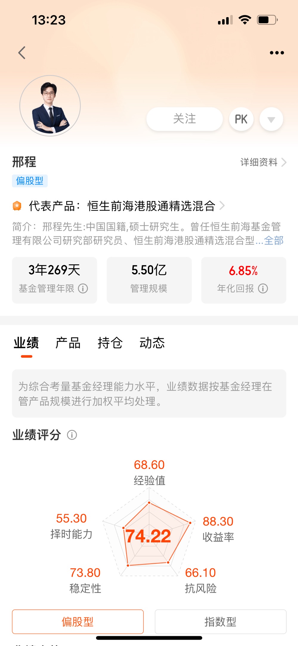 基金管理团队的实力更是让我放心的关键。这只基金由邢程和龙江伟两位基金经理共同管理,两位经理都有着丰富的从业经验和出色的业绩表现。邢程从业近6年,年化回报6.85%,代表作恒生前海港股通精选混合的业绩表现亮眼,近1年收益率在同类产品中排名靠前,他擅长对行业景气度的判断,能精准挖掘电气设备、汽车等成长行业的投资机会。龙江伟是中山大学管理硕士,从业不到一年,年化回报就达到40.48%,他深耕成长股投资,对机械、计算机等行业有着深入的研究,管理的恒生前海高端制造混合A近1年收益率达52.90%,展现出极强的主动管理能力。两位经理的投资风格互补,一位擅长行业景气度把握,一位专注成长股挖掘,这样的组合能为基金的运作提供更全面的决策支撑,让指数增强策略的落地更有保障。而基金公司恒生前海基金也是值得我们信赖的伟大公司,成立于2016年,管理规模达到182.86亿元,旗下管理67只基金,拥有7位专业基金经理,扎实的公司实力为基金的运作提供了稳定的平台支持。