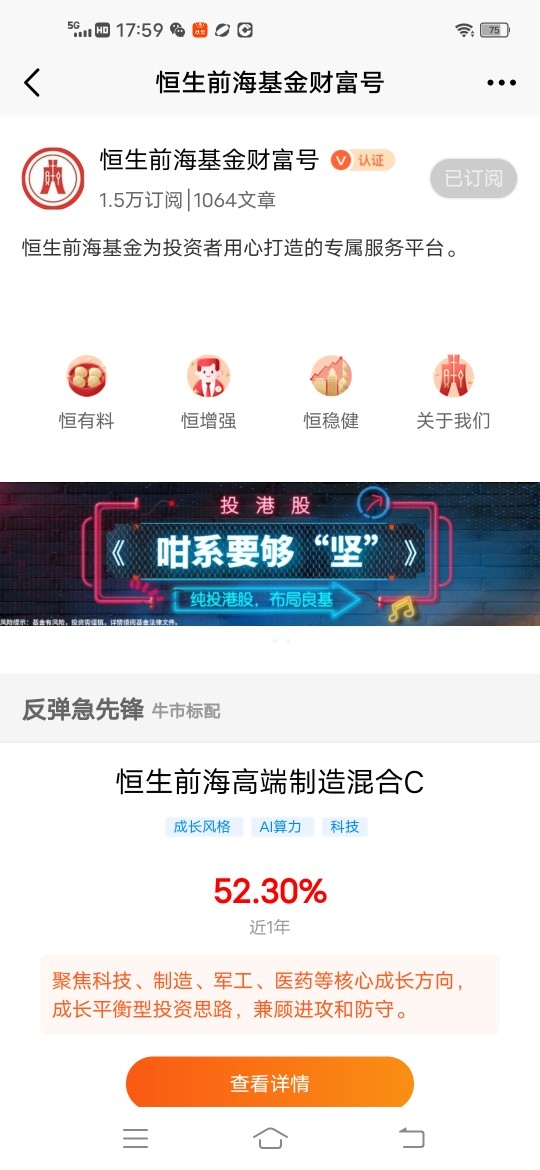 基民小虎是恒生前海基金的铁粉,一直持有$恒生前海短债债券C$ $恒生前海恒源天利债券C$ 等多个基金,收益和体验都非常好!将会认购$恒生前海北证50成份指数增强A$ ,并长期坚定持有!@恒生前海基金