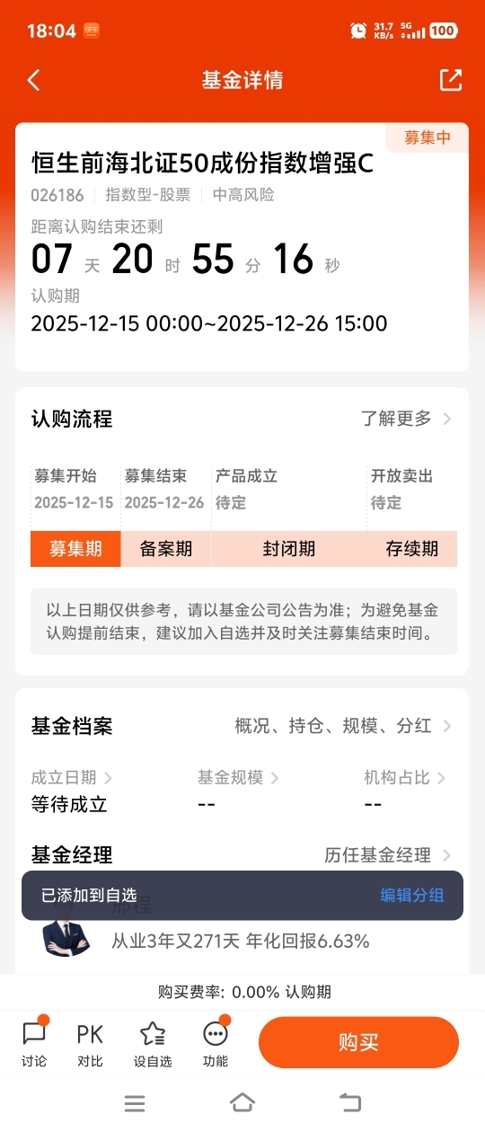 $恒生前海北证50成份指数增强C$最让人动心的还是低门槛+指数增强策略+高弹性赛