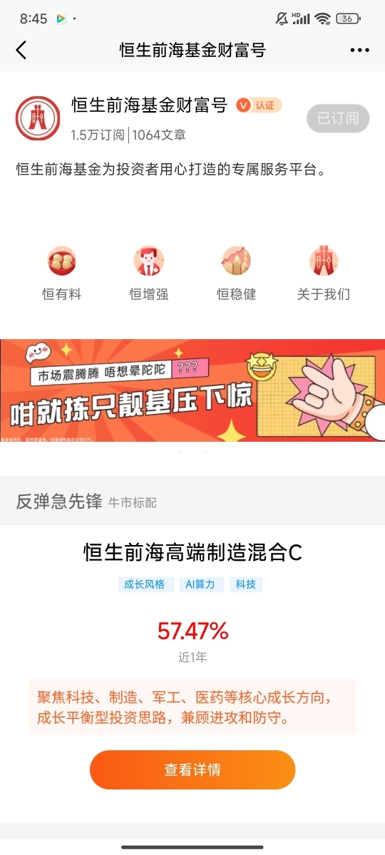 基金管理人恒生前海基金的专业实力,也是我放心布局的重要保障。恒生前海基金背靠强大股东背景,在权益投资、指数投资领域深耕多年,拥有一支经验丰富的投研团队,对北交所市场有深入的研究和独到的研判,能精准把握北证50成分股的基本面变化和行情节奏。北交所市场和主板、创业板差异较大,对投研团队的专业性要求更高,而恒生前海基金提前布局北交所研究,对成分股的成长逻辑、估值水平、行业趋势都有全面覆盖,能为基金的主动增强策略提供坚实支撑,最大程度保障基金业绩的稳定性和超额收益的可持续性,比一些缺乏北交所研究积累的基金公司更靠谱。