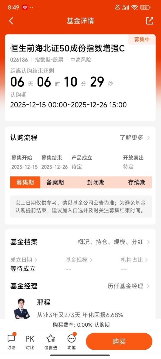 #恒生前海北证50成分指数增强基金C#$恒生前海北证50成份指数增强C$ 自924行情启动至今,北证50绝对是A股市场当之无愧的王者,区间涨幅飙涨137%,即便是2025年以来也逆势大涨30%以上,远超沪深各大指数,这份十足的弹性,让我果断将北交所投资纳入自己的核心布局清单。很多普通投资者纠结北交所投资门槛高、选股难,其实选对工具就能轻松上车,我近期不仅申购了恒生前海北证50成分指数增强基金C类(026186)作为底仓,还计划后续设置定投长期持有,这只正在申购中的基金,正是普通人一键布局北交所核心资产的最优解,而我看好它,核心源于其多重无可替代的优势和亮点。