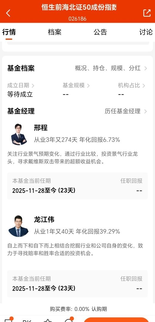 基金的投资业绩离不开优秀的管理团队与强大的投研支持,恒生前海北证50成份指数增强C由恒生前海基金旗下资深基金经理邢程和龙江伟共同管理,依托公司强大的投研体系,为基金的稳健运作保驾护航。