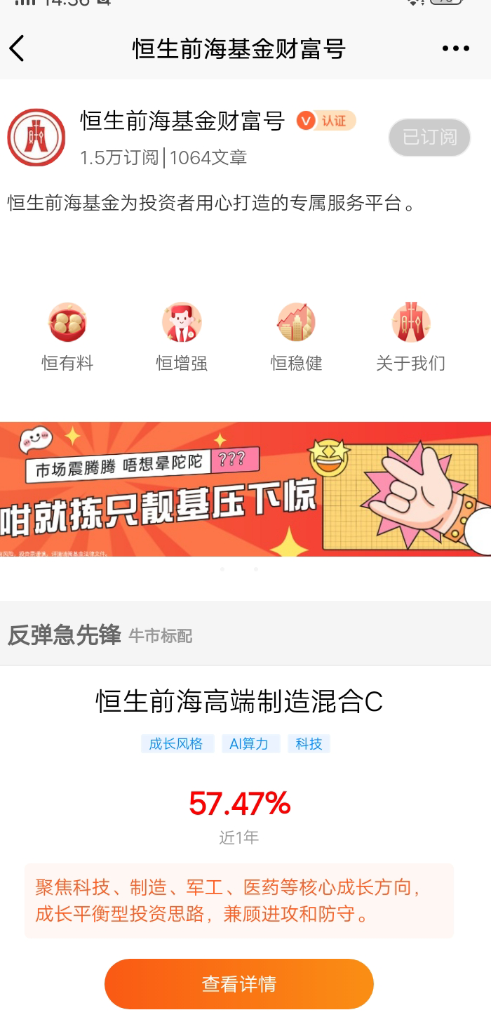 $恒生前海北证50成份指数增强C$ 是一支处于认购期的基金,拟任邢程、龙江伟为基金经理,邢程的投资理念“关注行业景气预期变化,通过行业比较,投资景气行业龙头,寻找戴维斯双击带来的超额收益机会”,龙江伟的投资理念“自上而下和自下而上相结合挖掘行业和公司自身的变化,制力于寻找赔率和胜率合适的投资机会”。北证50指数以“科技属性突出、新兴产业集中”为特点,集中在电力设备、计算机、机械设备、电子和医药生物等带走明显科创属性的行业,成长潜力高。@恒生前海基金