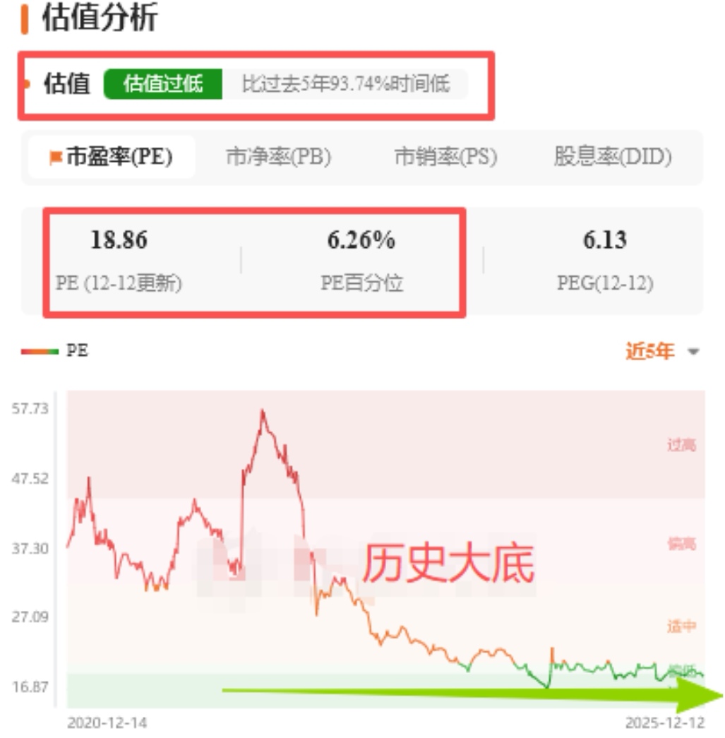 这只基主投消费,查了下估值,惊呆了!估值都到地板了,PE是18.86,百分位是