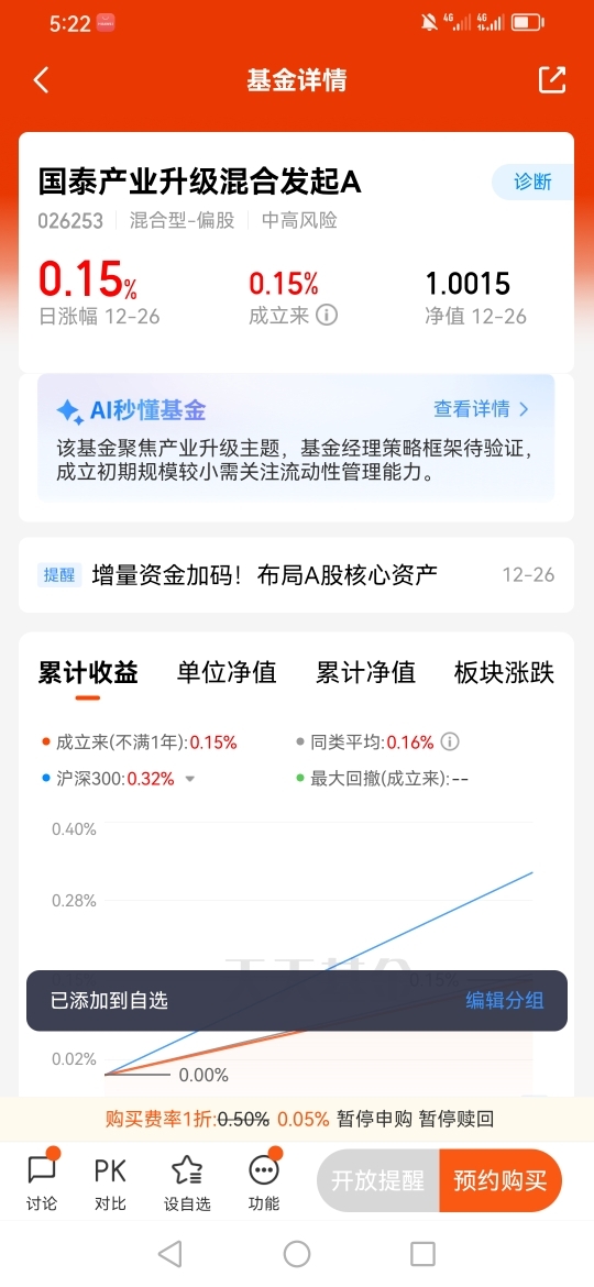 因此我重点关注了国泰产业升级混合发起A(026253),因为国泰基金在投资领域相当的专业。@国泰基金