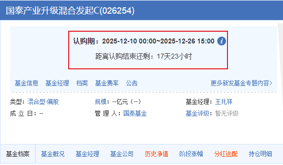 不过话说回来,赛道再火,普通人想直接参与也没那么容易——要么是个股波动太大扛不住,要么是研究门槛太高没精力,毕竟我这种上班族每天忙完工作就没剩多少时间,哪有功夫挨个分析企业的技术壁垒、订单持续性?这时候选一只精准聚焦这个赛道的基金,就成了最省心的选择,而国泰产业升级混合发起C(026254),恰好戳中了我对“优质赛道 靠谱管理”的双重期待。