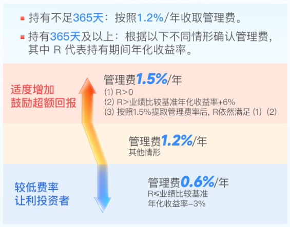 这只基金还有个很大的亮点,就是采用浮动费率制。这一点对投资者来说太重要了,传统基金不管业绩好坏,都要收固定管理费,而浮动费率是把管理费率和基金业绩直接挂钩的。简单说就是“多赚多收、少赚少收”,如果业绩不好,管理费会下降,能减少我们亏损期的负担;如果能做出超额收益,管理人才能拿到更高的管理费。这种模式能让基金管理人和投资者的利益深度绑定,倒逼管理人更注重回撤控制,努力追求更好的回报。尤其是对于人形机器人这种成长型赛道,这种激励机制能让基金经理更用心地打理资金,提升我们的投资体验。