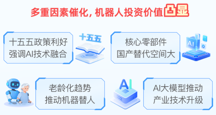 为什么看好机器人?最核心的一点就是人口老龄化带来的刚需,现在劳动力缺口越来越明显,不管是工业生产还是民生服务,都需要替代力量。人形机器人因为具备类人形态,能适配现有人类生活和工作场景,比传统工业机器人通用性强太多,是解决这个痛点的最佳方案之一。而且这不是咱们自己的判断,全球都把它当成下一个颠覆性产品,就像当年的智能手机、新能源汽车一样,谁能在这个赛道站稳脚跟,谁就能掌握未来产业的话语权。