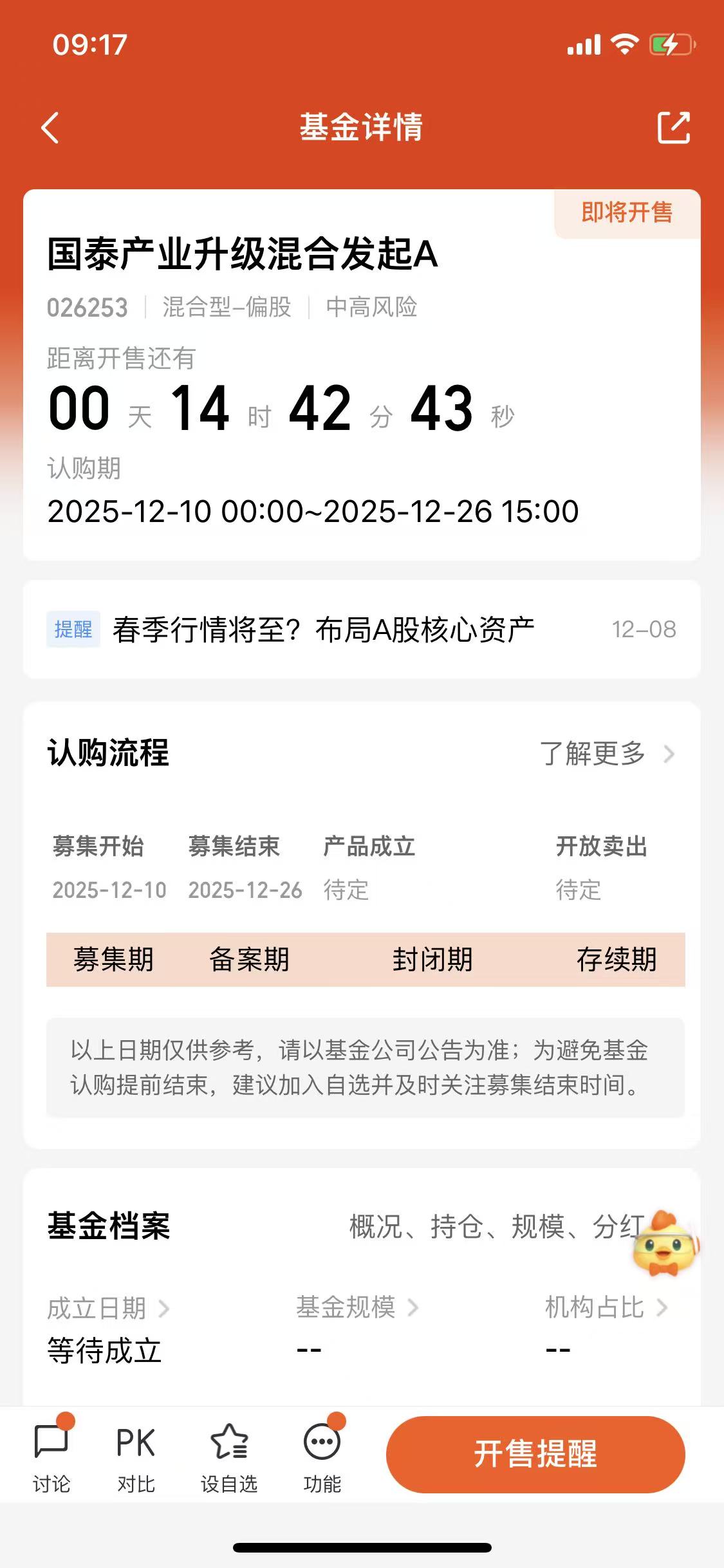 聊完赛道,再说说大家最关心的:怎么布局?直接买个股的话,难度其实不小。人形机器人产业链长,涉及传感器、执行器、芯片、AI算法等多个环节,普通投资者很难精准判断哪家企业能最终跑出来。而且现在板块刚回暖,个股波动可能还是比较大,风险不好控制。这种情况下,通过基金布局就是更稳妥的选择,尤其是聚焦这个赛道的新基金,能在低位精准建仓,分享整个产业成长的红利。而国泰产业升级混合发起C(026254),就是我近期发现的值得关注的一支。
