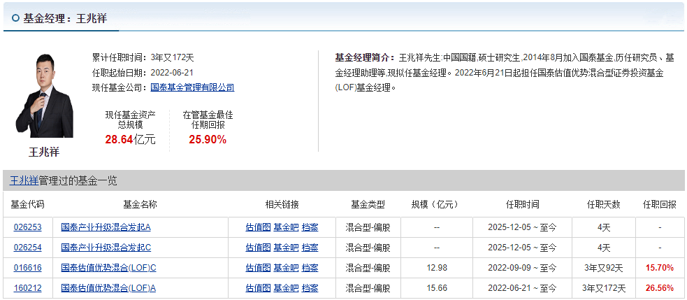 更关键的是基金经理靠谱,这是基金业绩的核心保障。拟任基金经理王兆祥,是国泰基金自主培养的优秀基金经理,有11年证券从业经历,还担任制造业投研小组组长,多年深耕制造领域研究,对机器人所在的高端制造赛道太熟悉了。他的投资风格偏科技成长,擅长挖掘价值成长股和周期成长股,这正好匹配人形机器人赛道兼具价值和周期成长的属性。他的代表作国泰估值优势A业绩特别拔尖,近1年业绩在同类里排前9%,近2年排前11%,这种实打实的业绩证明了他的投研能力,把钱交给这样的基金经理,大家才能放心。