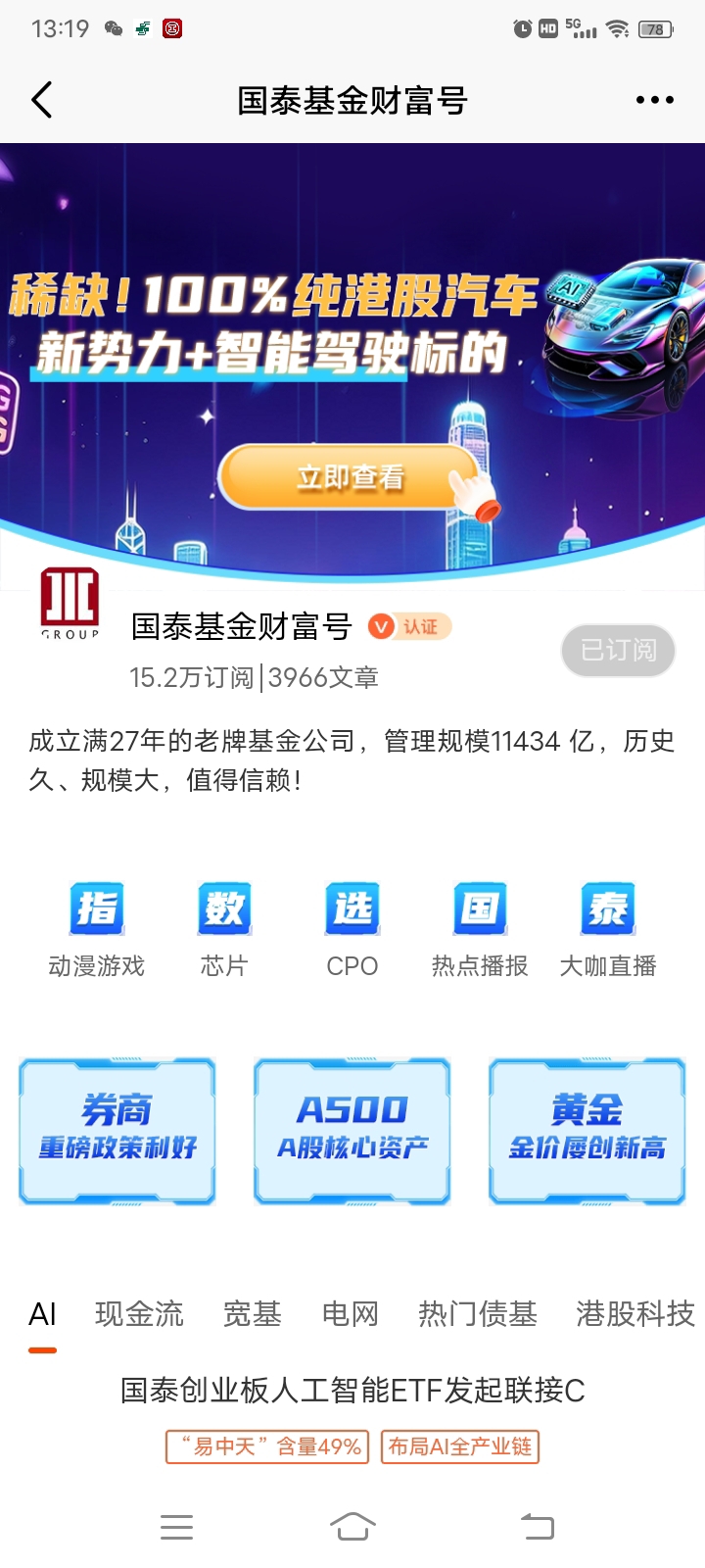 国泰这只基金刚好踩在机器人产业的风口上,基金经理王兆祥又是高端制造领域的熟手,选股方向应该能精准卡到产业链的核心环节。加上现在政策从产业端到资金端都在给科创铺路,“稳货币+强支持”的组合拳下,硬科技赛道的结构性机会只会越来越多。我打算认购这只C类份额,既能跟上机器人产业的爆发节奏,也能借着政策红利吃一波新质生产力的发展收益,已经把它加自选等着开售了。#商业航天利好频出!如何把握投资机会?# #券商行业迎利好:杠杆上限“松绑”# #12月基金投资策略# #低估补涨号启航# #青禾创作计划# #观点搭子团火热招募中!# #2025即将收官 明年怎么投?# @国泰基金
