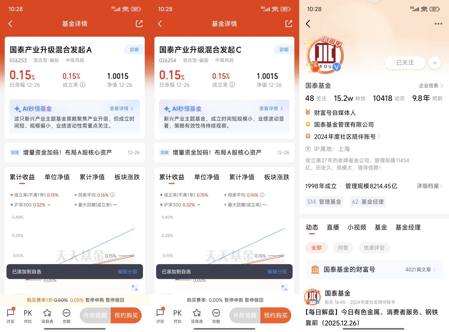 - 经理实力:王兆祥代表作国泰估值优势A近1年收益前9%,擅长挖掘“隐形冠军”(如绿的谐波、拓普集团)。